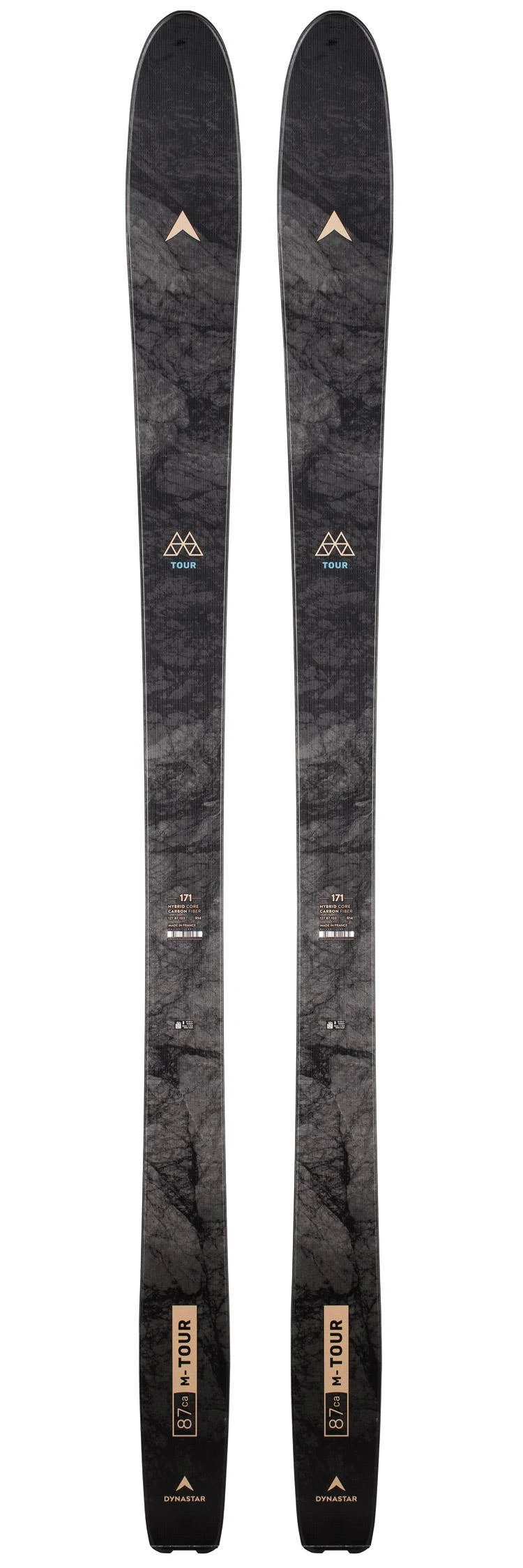 Le M-Tour 87 CA reprend la même forme qui a fait le succès de l’ancien Mythic 87 Pro, avec une construction plus moderne offrant de belles performances à la montée comme à la descente. On retrouve ainsi un noyau hybride en bois et en polyuréthane, combiné à des fibres de basalte et des fibres de carbone. L’ensemble offre un excellent rapport poids/puissance, permettant d’avoir un ski qui ne pèse que 1 200 grammes (par latte, en taille 171 cm) mais qui garde du caractère.